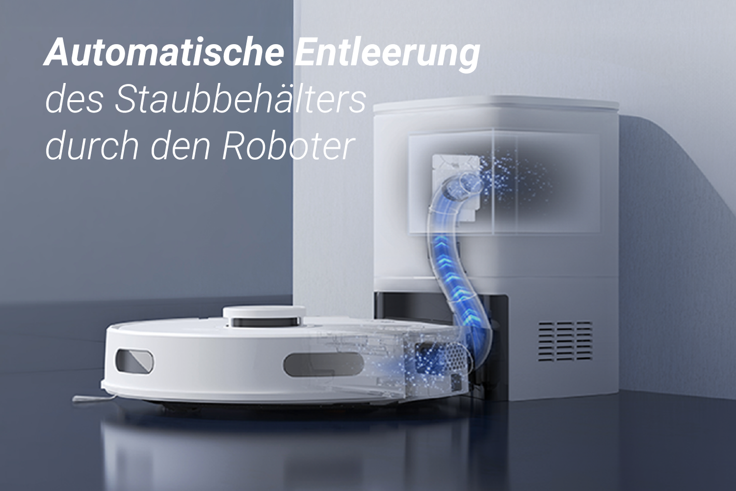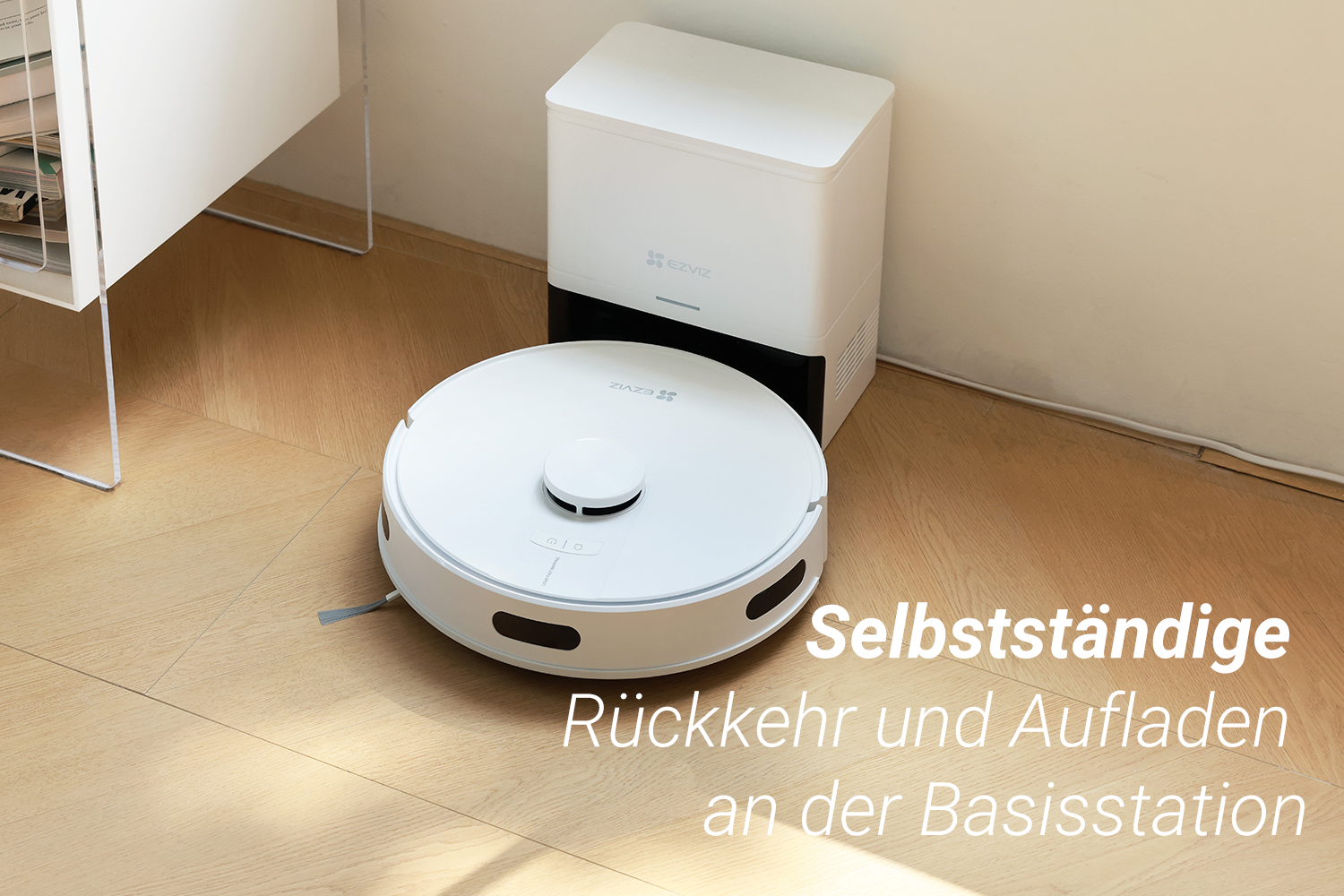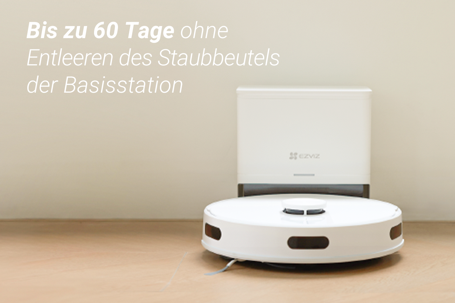 Im Detail überzeugt der EZVIZ RE4C Plus mit einer Vielzahl technischer Raffinessen: Sein Staubbehälter wird automatisch in die Basisstation entleert, die mit einem hygienischen Staubbeutel ausgestattet ist und somit bis zu 60 Tage ohne manuelles Entleeren auskommt. Die Navigation erfolgt dank LiDAR-Sensoren besonders präzise und schnell, wodurch keine Ecke vergessen wird. Mit einer maximalen Saugleistung von 4000 Pa entfernt er Schmutz, Staub und Tierhaare zuverlässig von Hartböden ebenso wie von Teppichen. Seine intelligente Software erkennt verschiedene Bodenarten und passt die Reinigung optimal an. Zudem kehrt er stets selbstständig zur Ladestation zurück, um jederzeit einsatzbereit zu sein.