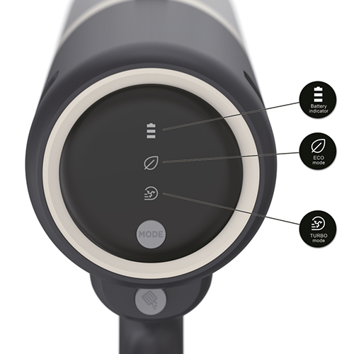Das Herzstück des Geräts ist der bürstenlose 200-Watt-Motor, der eine effiziente und langlebige Leistung garantiert. Dabei hast du die Wahl zwischen zwei perfekt auf unterschiedliche Bedürfnisse abgestimmten Leistungsstufen: Im Eco-Modus genießt du eine Laufzeit von bis zu 45 Minuten im Handgeräte-Modus beziehungsweise bis zu 30 Minuten bei der Bodenreinigung – ideal für die tägliche Pflege. Benötigst du maximale Power etwa bei hartnäckigem Schmutz, schaltest du einfach in den Turbo-Modus um, der mit einer Saugkraft von 30 AW bis zu 20 Minuten durchhält. Der hochwertige Lithium-Ionen-Akku mit 25,9 V und 2600 mAh Kapazität ist herausnehmbar und lässt sich überall bequem aufladen – in nur fünf Stunden ist er wieder voll einsatzbereit. Ein intuitives Display zeigt dir jederzeit den Akkustand sowie den aktuell gewählten Modus an, damit du stets volle Kontrolle behältst.