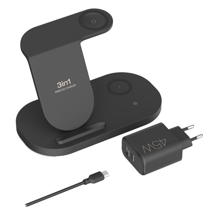 - 1x 3-in-1 Wireless Charger, mit dem du gleich mehrere Geräte kabellos und bequem aufladen kannst