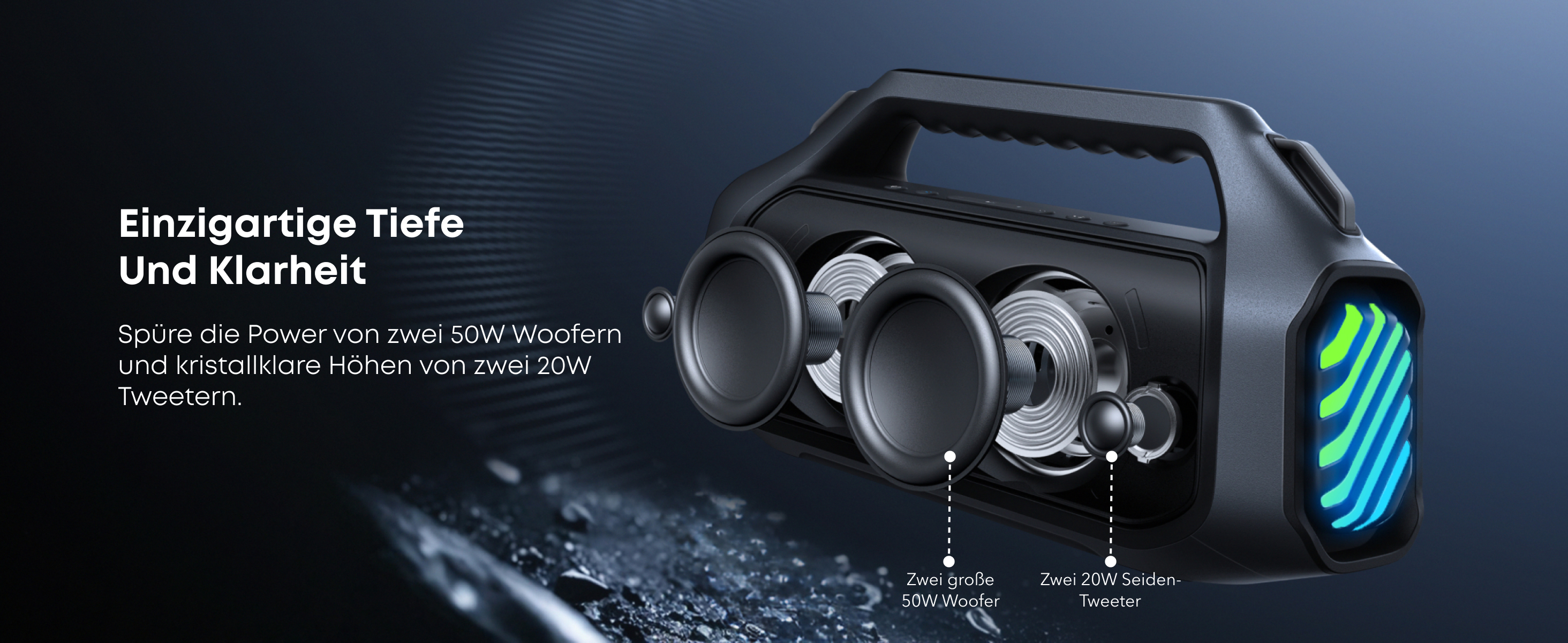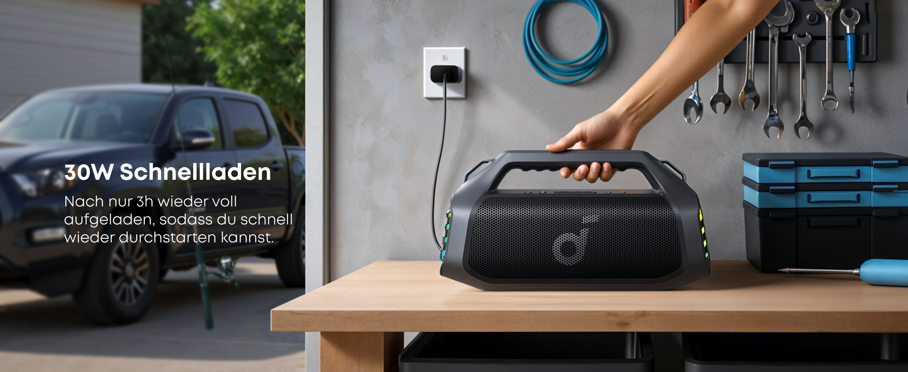 Ob du am Strand liegst, im Garten grillst oder mit Freunden unterwegs bist – der Soundcore Boom 2 Pro begleitet dich zuverlässig und sorgt für den perfekten Soundtrack zu deinem Leben. Verbinde ihn kinderleicht per Bluetooth mit deinem Smartphone oder Tablet und starte deine Lieblingsplaylist in sekundenschnelle. Auch für Outdoor-Sportarten oder entspannte Yoga-Sessions ist er dank seiner Robustheit und langen Akkulaufzeit ideal geeignet.